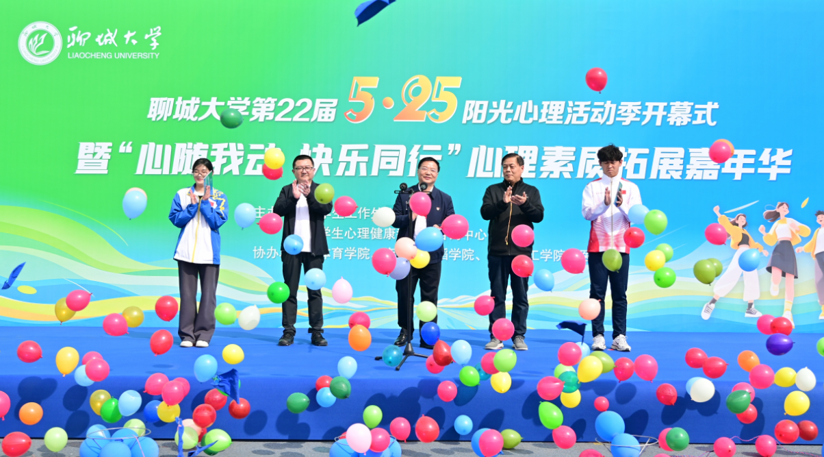 3月26日下午,聊城大学第22届“5・25”阳光心理活动季开幕式暨“心随我动,快乐同行”心理素质拓展嘉年华在东校区田径场隆重举行。校党委常委、副校长苏明海出席活动并宣布开幕。来自学工系统和各学院的1000余名师生共同参与了活动。