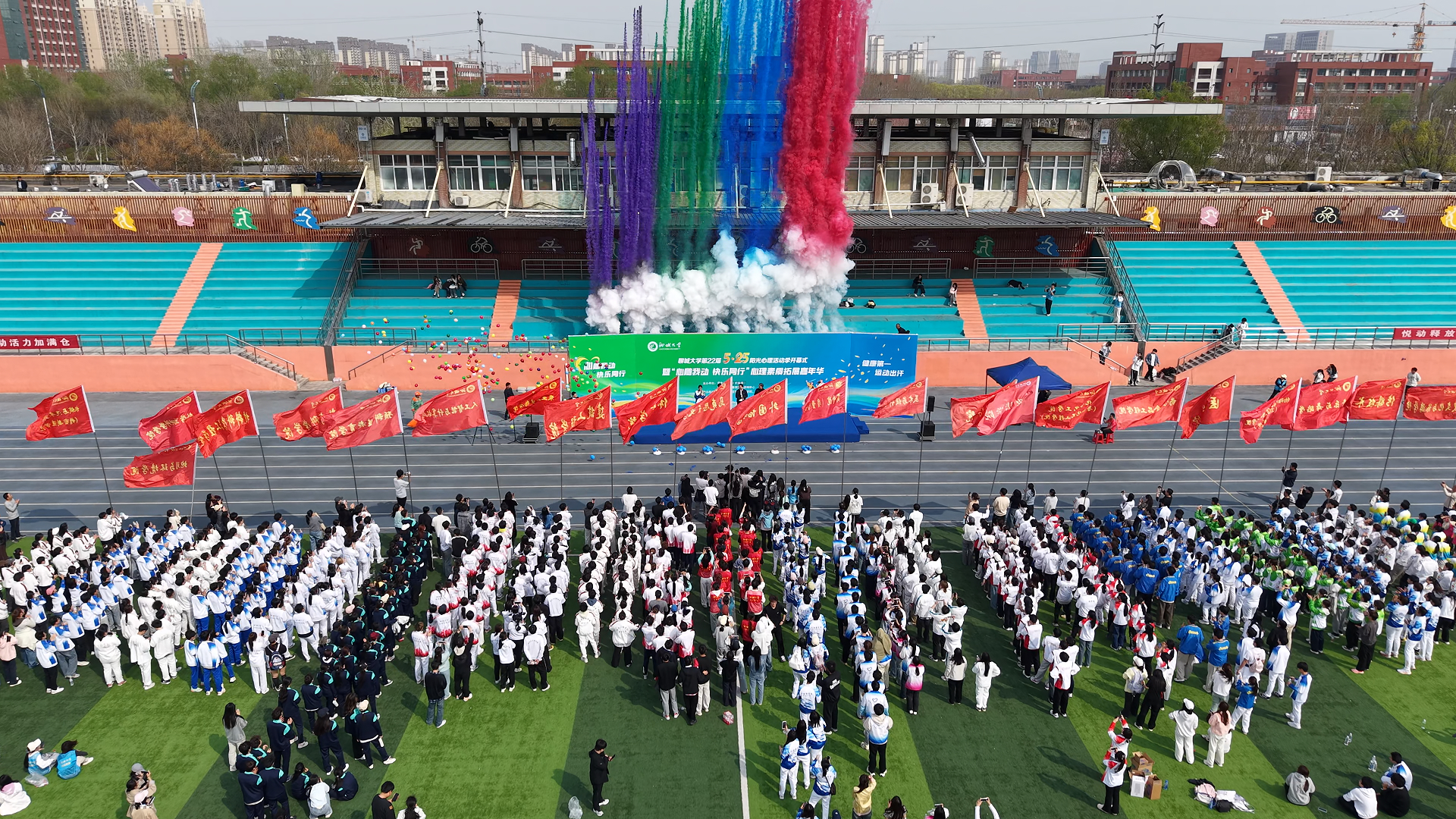 现场彩烟升腾、气球飞扬,气氛热烈、青春昂扬。旱地龙舟、击鼓颠球、鸿运通天、长条毛毛虫、滚滚向前、球类大作战六大特色项目轮番上阵。各参赛队伍默契配合、激烈角逐、奋勇争先,歌声、笑声、加油声此起彼伏,汇成一片欢乐的海洋。