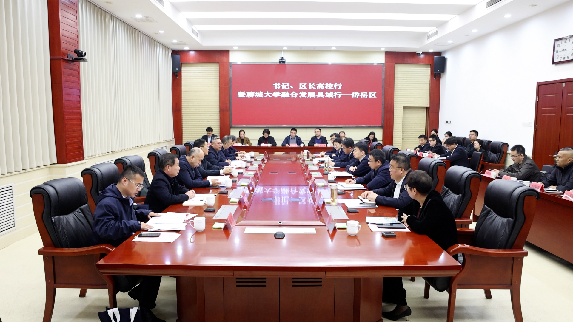 4月1日,聊城大学融合发展县域行活动在泰安市岱岳区举行。校党委常委、副校长聂广明,岱岳区委书记刘国成参加活动。