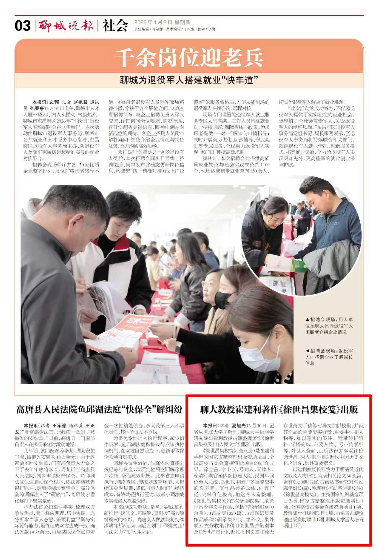 【聊城晚报】报道聊大教授崔建利著作《徐世昌集校笺》出版