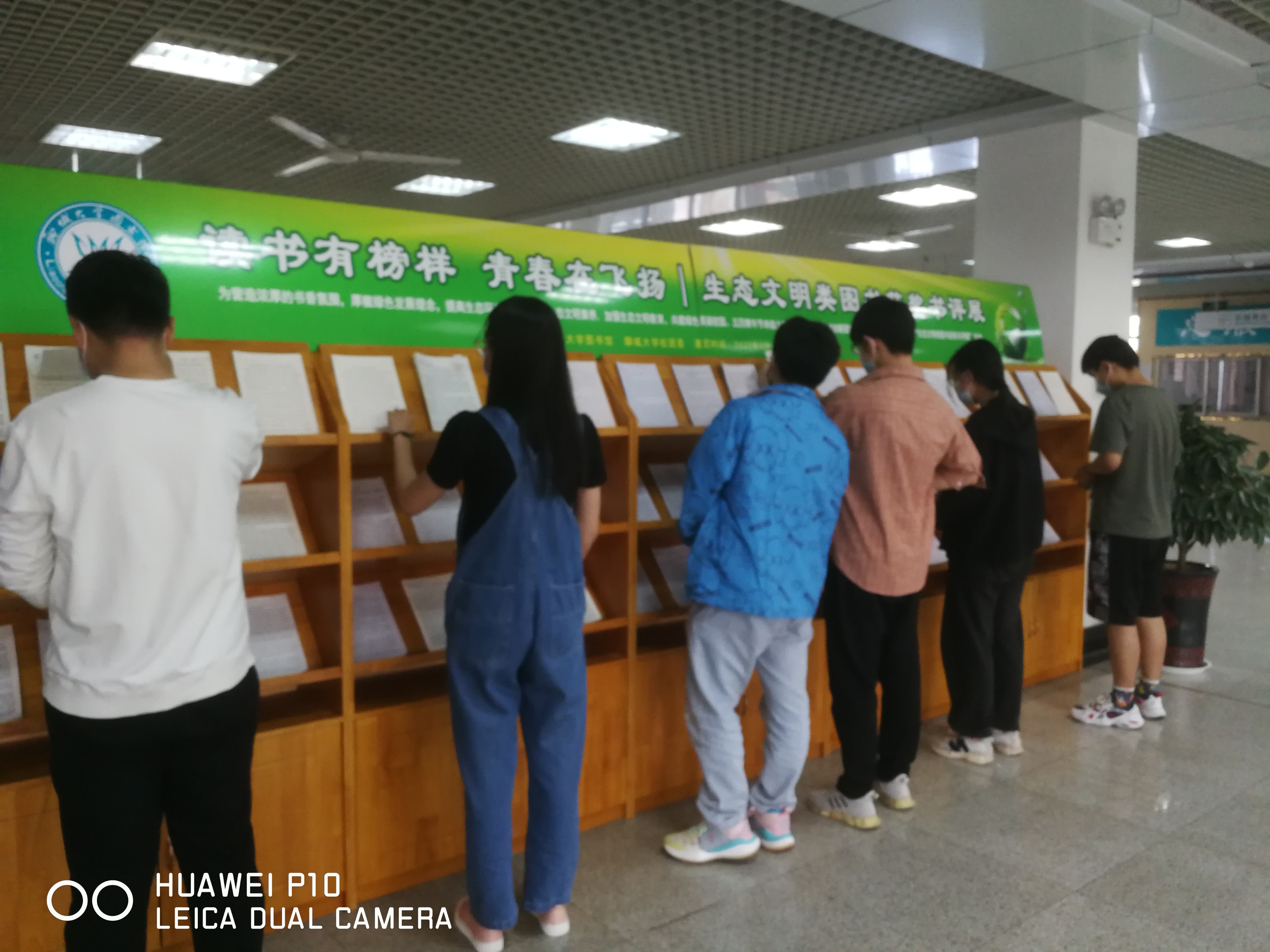 本次活动是在前期“生态文明类图书书评征集”活动的基础上,从同学们的来稿中精心评选出的获奖作品。书评用鲜明的主题,清晰的逻辑,阐述了书中的主旨、内涵、感悟,彰显了我校大学生对生态文明的积极关注以及良好的精神风貌,现场引来众多读者驻足观展。