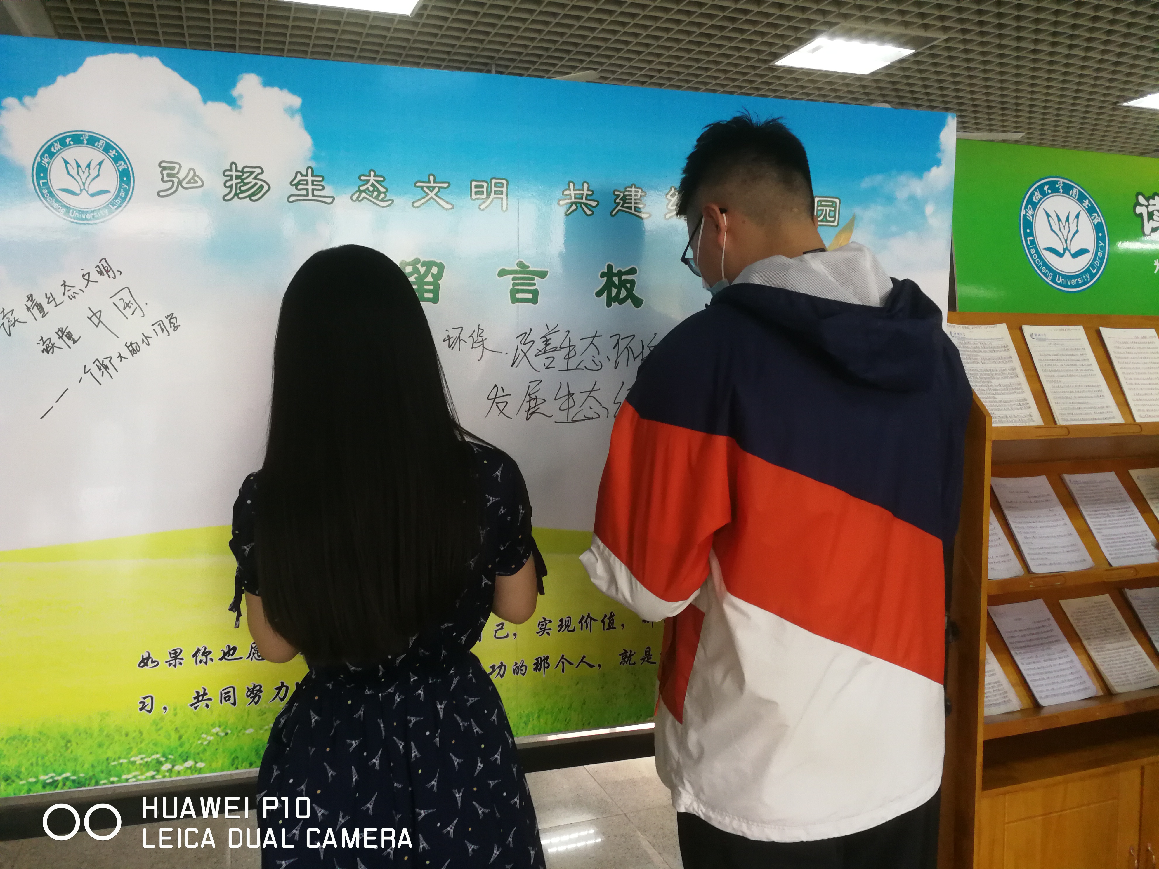 生态文明不仅仅是理念、意识、素养更是实践。书评展上还专门在展台边设置了“弘扬生态文明,共建绿色校园”留言板,有些读者当即留言:“读懂生态文明,读懂中国”、“生态文明是国之大计”、“共建绿色校园从我做起”等温暖而知性的文字,还有的读者把自己所了解的生态文明类的好书、及自己对生态文明的观点以感言的形式展示在留言板上与大家分享,抒发了对于对生态文明建设责任与担当的最坦率的理解。