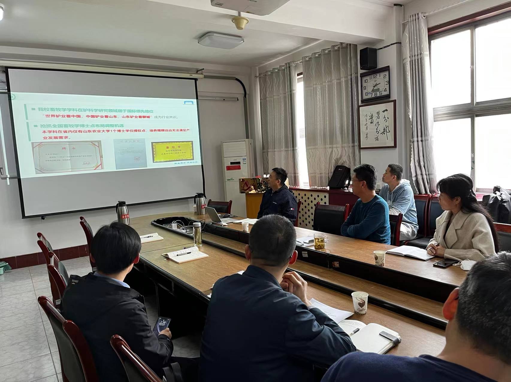 会上,李玉保介绍了学院申报畜牧学、风景园林学情况、建设思路以及发展规划。山东省高水平畜牧学培育学科负责人王长法教授、风景园林学学科负责人翟付顺副教授分别从学科现有建设基础及分析、学科建设思路及总体目标、学科建设任务及年度计划以及经费使用计划方面做了汇报。