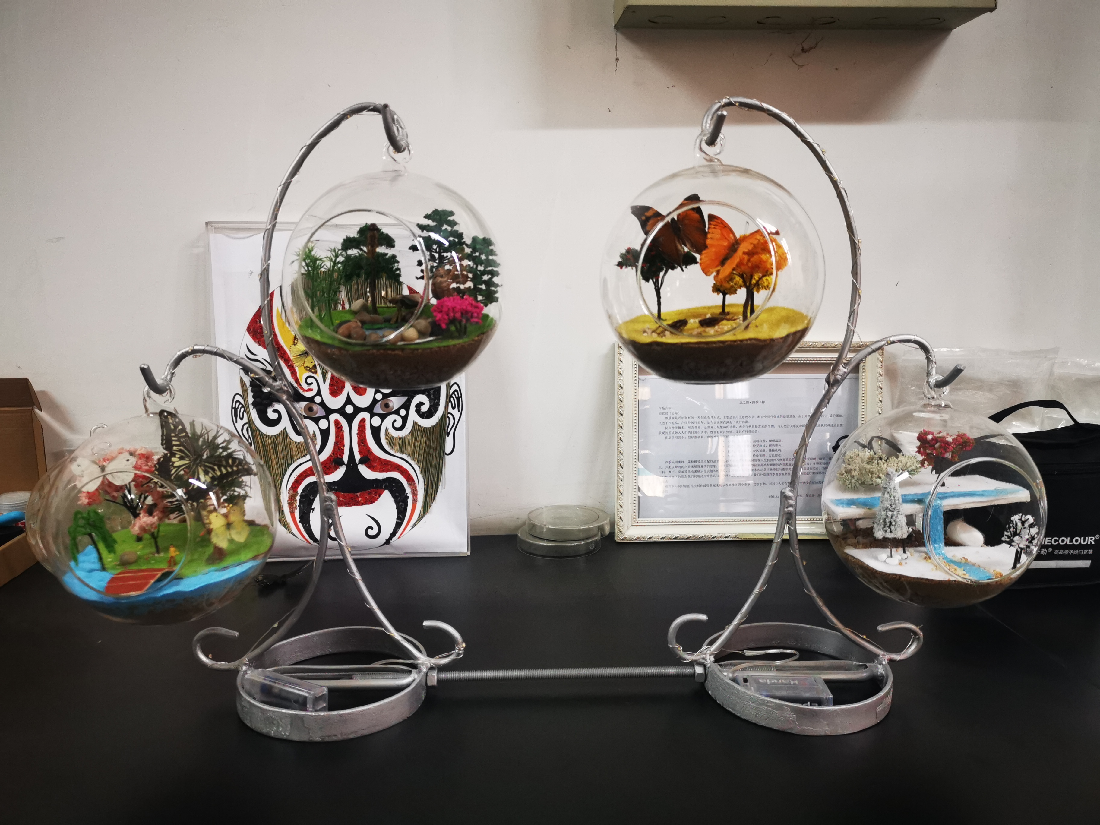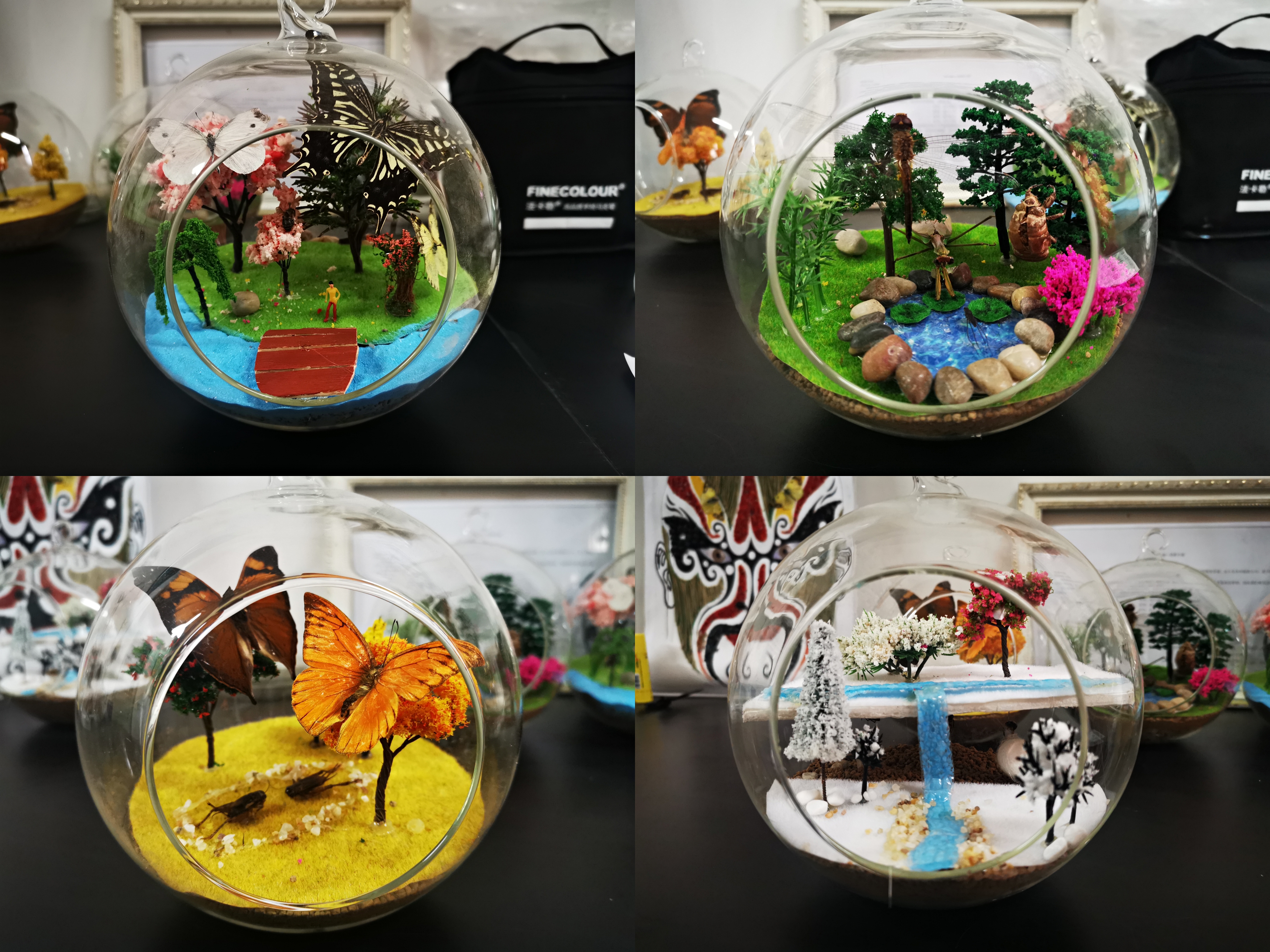 作品简介:把不同季节的代表性昆虫制作成微景观,展示一年四季的交替变化,体现了大自然的生机勃勃和人与自然和谐共存的生态理念。