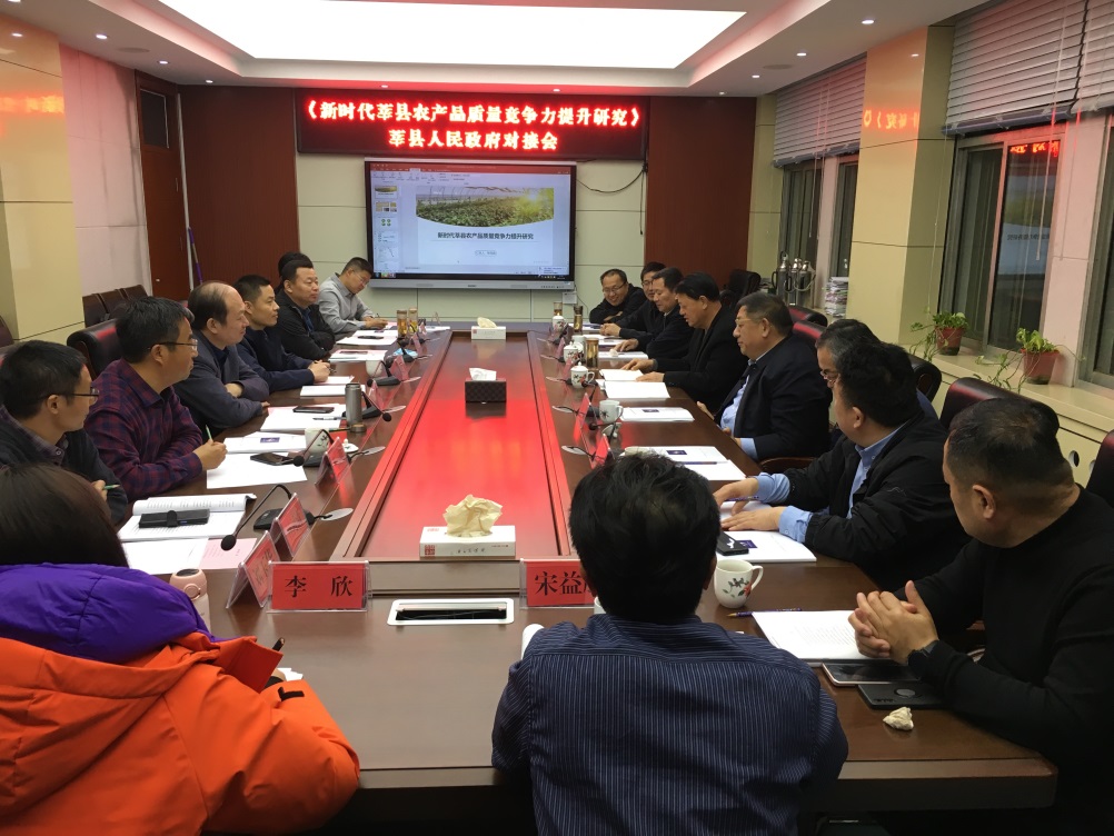 12月6日,新时代农产品质量竞争力提升课题莘县人民政府对接会在聊城质量发展与研究中心二楼会议室召开。莘县副县长魏晨清,聊城质量发展研究中心主任、校党委原副书记、课题顾问徐传光出席会议并讲话,莘县政府相关部门和乡镇、企业负责人,聊城质量发展研究中心、课题组负责人及相关人员参加会议。会议由我校教务处处长、课题主持人马中东教授主持。