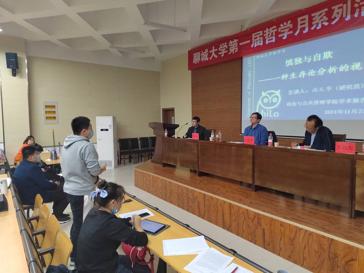 11月27日,由政治与公共管理学院主办的聊城大学第一届“哲学月”活动之大咖讲座第一期于东校区6#C106举办,山东社科研究院尚文华研究员出席会议进行学术交流,政治与公共管理学院哲学系部分师生以及全校哲学爱好者参与此次讲座。