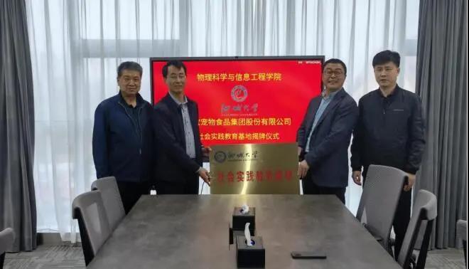 10月26日,聊城大学物理科学与信息工程学院与乖宝宠物食品集团股份有限公司举行聊城大学社会实践教育基地揭牌仪式。乖宝宠物食品集团董事长秦华,学院党总支书记邵鑫、院长王文军、党总支副书记吴成、工会主席赵汝木共同参加了本次仪式。