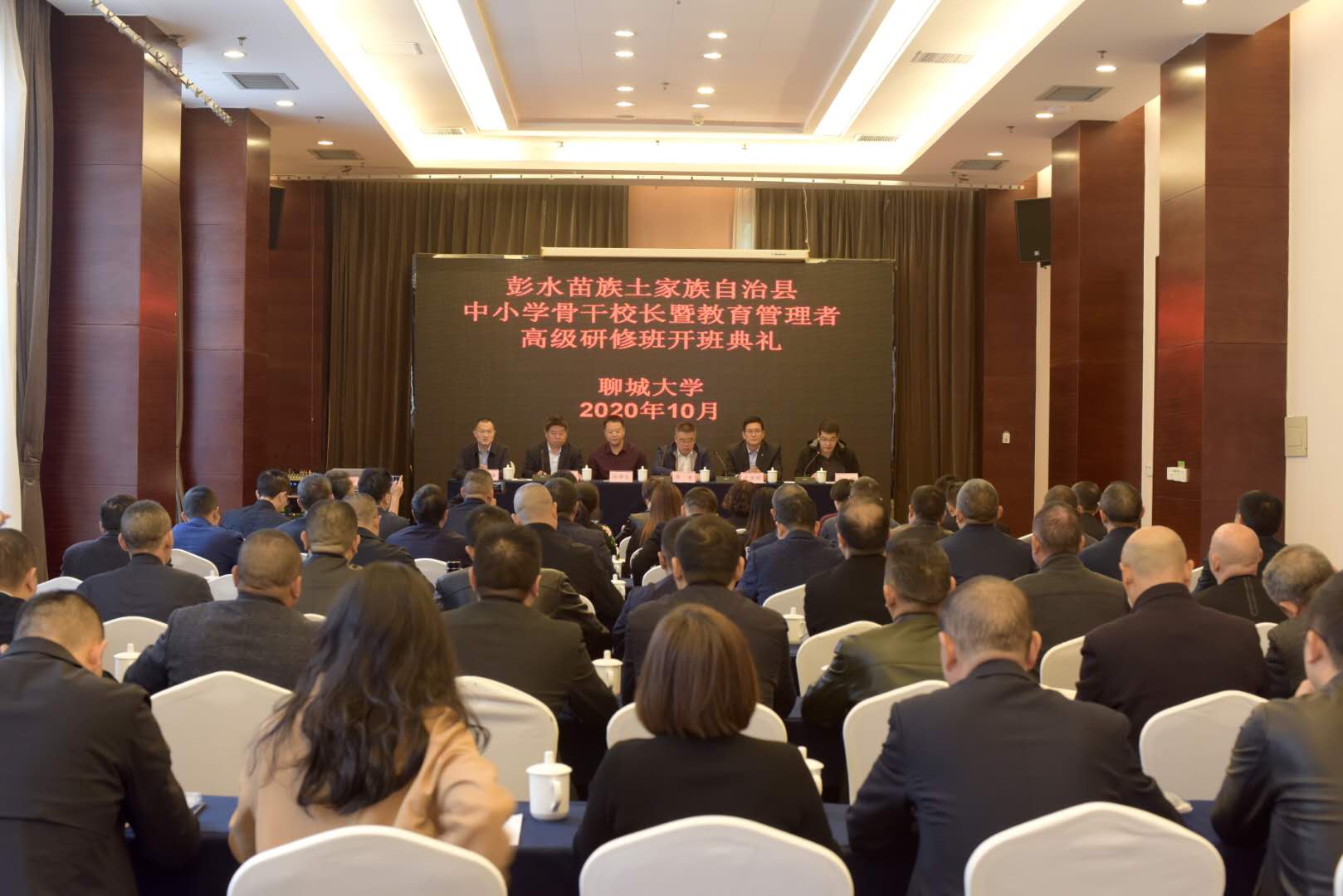 10月12日,由我校主办的重庆市彭水苗族土家族自治县中小学骨干校长暨教育管理者高级研修班(第二期)开班典礼在聊城市会议中心举行。聊城市教体局党组成员、正县级干部田凤奎、彭水县人民政府周勇督学、彭水县教育委员会副主任任牮交,我校继续教育学院院长于源溟及相关负责同志等出席典礼。