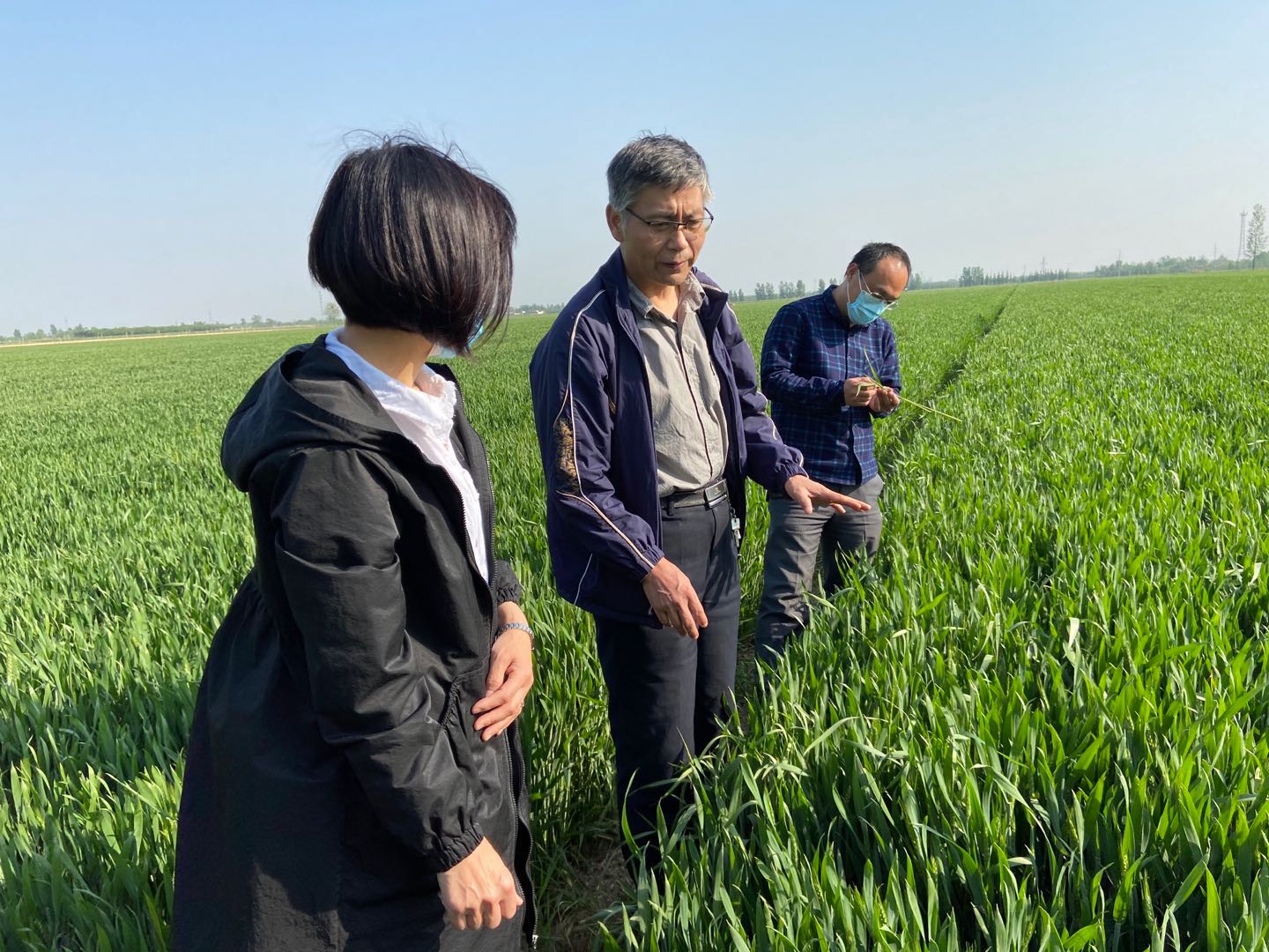 郭尚敬教授团队扎实推动省农业科技园区产业提升工程项目“基于优质蛋白加工的小麦、大豆增产提效技术研究推广”实施,深入项目对口帮扶村冠县辛集大王庄村,就该村1100亩优质高蛋白小麦开花期肥水管理和病虫害发生情况进行现场调查并对村民进行培训指导。调研发现,目前小麦整体长势良好,但随气温上升存在蚜虫危害风险,专家组提醒村民关注虫情变化,及时采取植保措施,同时建议村民在小麦挑旗孕穗至抽穗扬花期结合浇水补施尿素或在扬花期叶面喷施尿素和磷酸二氢钾溶液混合肥,保障小麦的生产品质。