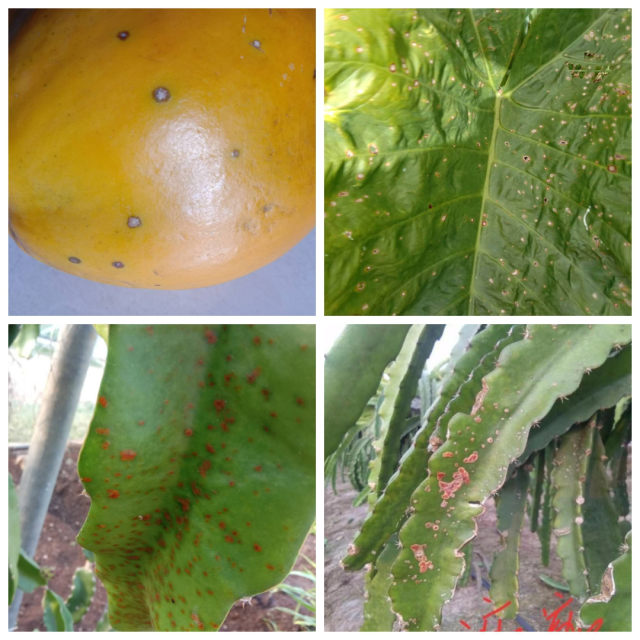 (图为调查木瓜、芋头、火龙果病害)