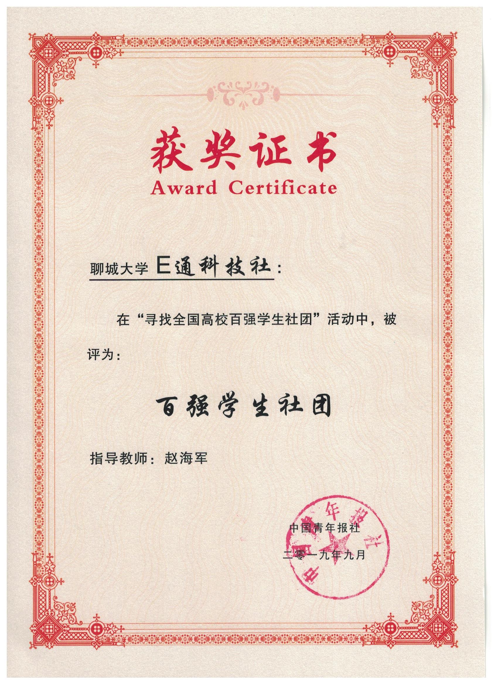 近日,由中国青年报社举办的寻找“全国高校百强学生社团”活动落下帷幕,聊城大学E通科技社被评为“全国高校百强学生社团”。