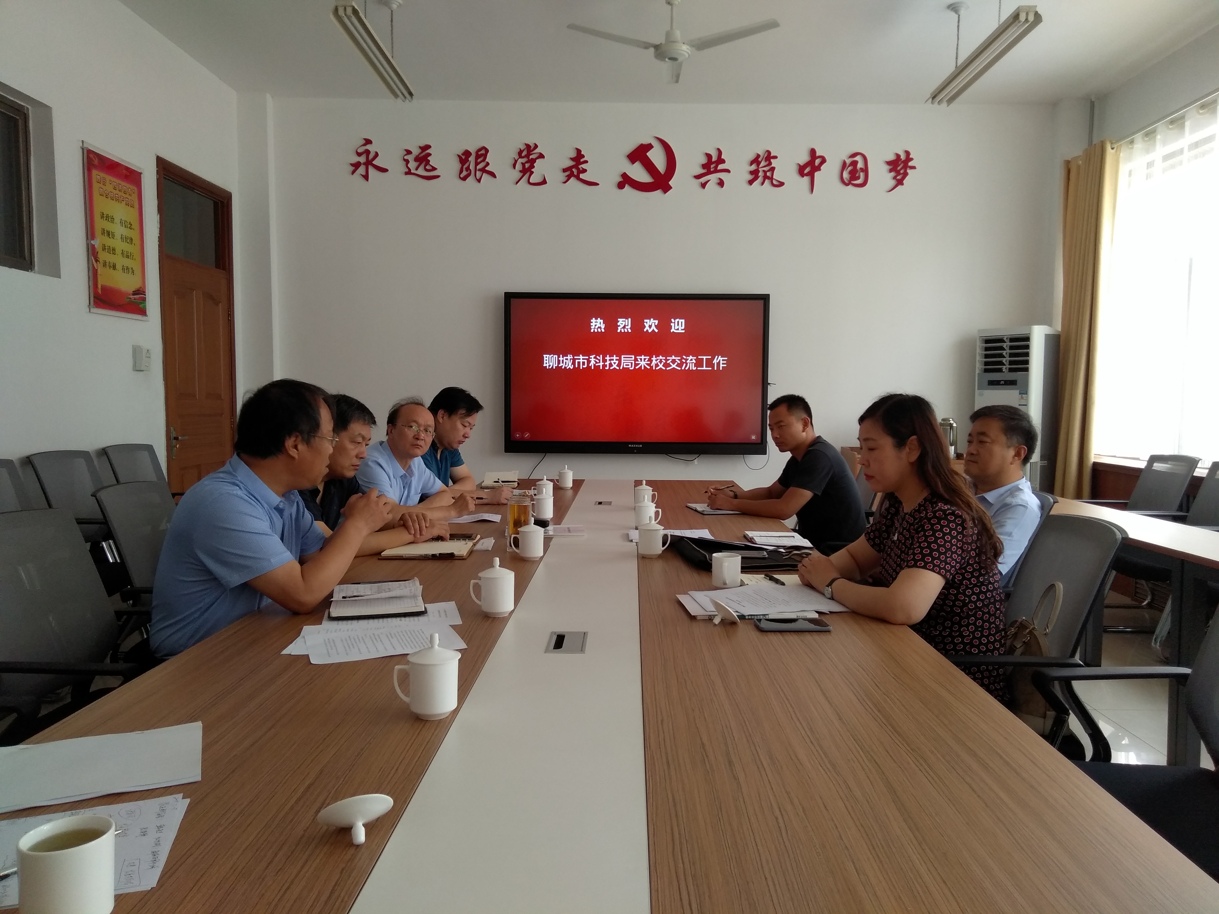 7月17日,聊城市科技局副局长张立新一行三人来校调研校地科技合作事宜。我校服务社会处处长任忠民、科学技术处处长赵建立以及相关人员参加了座谈。