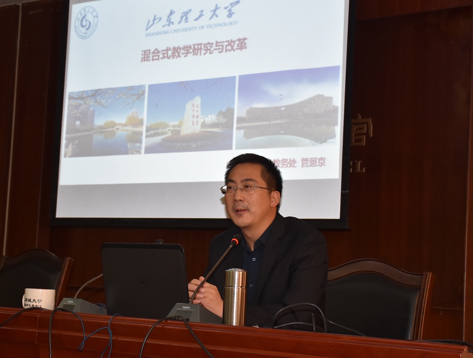 为提高我校教师教育教学的能力,构建线上线下相结合的教学模式,围绕激发学生学习兴趣和潜能深化教学改革,5月7日,教师发展中心主办的2019年第8期教学工作坊在东湖宾馆一楼报告厅如期展开。山东理工大学教育技术中心主任管恩京副教授应邀主持本期教学工作坊,探讨混合式教学研究与实践问题。来自各教学单位的部分教学副院长、一线教师、教务处、教师发展中心工作人员共100余人参加了本次活动。