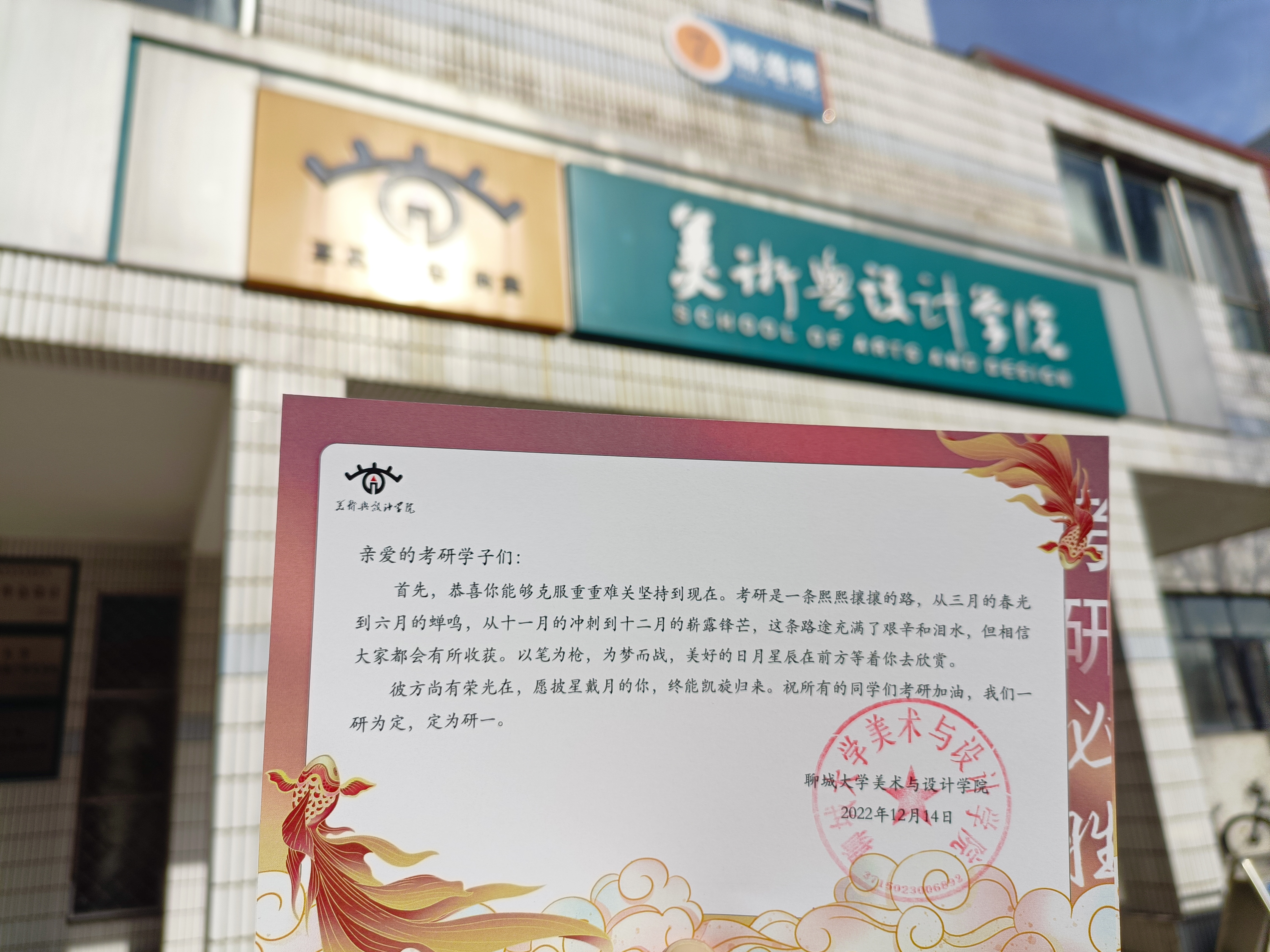 寒冬送温暖,心系逐梦人,研究生考试将至,为帮助2019级考研学子缓解压力,同时坚定考试信心,美术与设计学院送上了“安全防疫、一‘研’为定”考研大礼包,预祝考研学子旗开得胜,一举成“硕”。