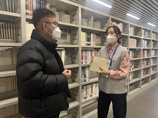 1月5日,宣讲团七组组长陈泉润同学前往聊城市图书馆开展主题为“以青年梦想推动中华民族伟大复兴”的党的二十大精神宣讲活动。宣讲主要围绕党的二十大报告中对青年寄予的殷切期望,何为新青年,新时代青年应当如何作为,身为聊城大学的当代青年应当如何彰显敬业、博学、求实、创新的聊大青年之魂等四个方面。陈泉润同学分别对一位大二在读学生、一位图书馆工作人员、一名青年教师进行宣讲,使受众群体与宣讲主题完美契合,积极引导广大群众学习宣传贯彻党的二十大精神,续写“红日初升绽芳华,青春之我显担当”的青春篇章。