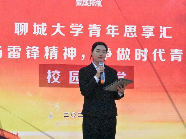 3月2日,法学院于西校区五四广场开展聊城大学青年思享汇“弘扬雷锋精神,争做时代青年”校园讲学活动,2020级学生代表王晓媛担任主讲人,法学院部分学生党员、学生骨干参与此次活动。