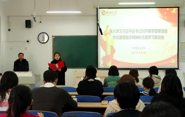 3月3日,马克思主义学院组织学生组织骨干成员召开专题座谈会,深入学习习近平总书记对开展学雷锋活动作出的重要指示精神,座谈会邀请马克思主义学院副教授、研究生导师郑继江担任主讲人。
