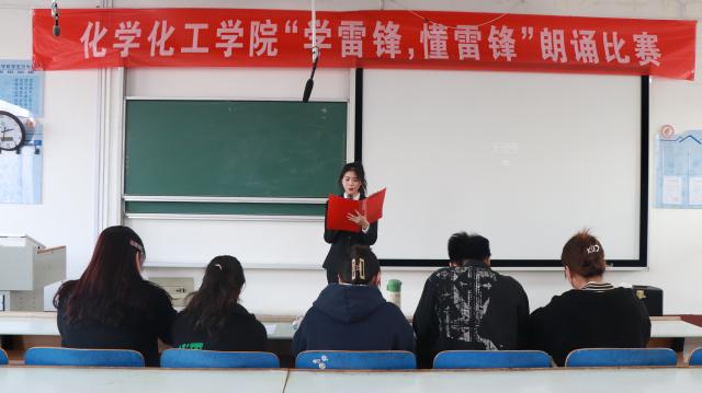 学雷锋精神,展青年风采。为弘扬雷锋精神,提高大学生的道德文化修养和社会责任感,加强大学生德育教育,3月2日,化学化工学院举办“学雷锋,懂雷锋”朗诵比赛活动。