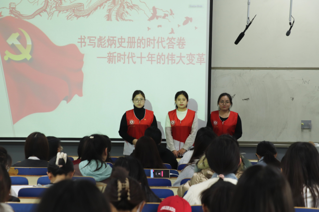 3月5日,马克思主义学院青年大学生时政宣讲团成员张莹欣、黄明雪、郭春晖在4号教学楼C221作了题为《书写彪炳史册的时代答卷——新时代十年的伟大变革》的宣讲。教育科学学院2022级学生代表参加了本次宣讲会。