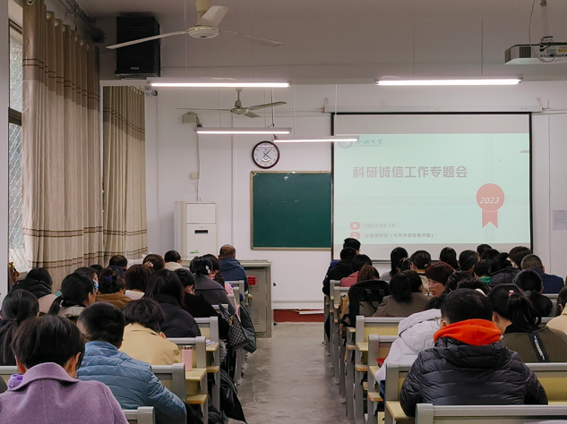 3月16日,外国语学院(大学外语教育学院)举办了科研诚信专题会议。党委书记王洪月,副院长李维滨(主持工作),副书记张超,副院长刘风山、李燕飞、秦洪庆、刘宾及外国语学院全体教职工出席此次会议,本次会议由王洪月书记主持。