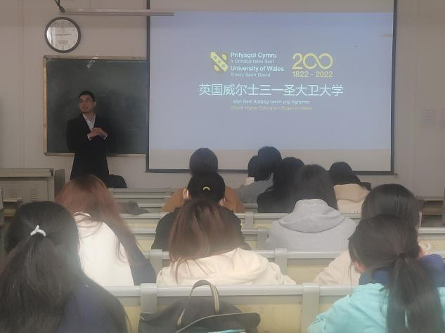 为了让同学们对出国学习有更深入的了解,助力国际化人才培养,让学生对自己未来升学规划和就业有更清晰的认识,3月30日,外国语学院于1#112教室开展英国威尔士三一圣大卫大学出国交流项目宣讲活动。本次活动邀请英国威尔士三一圣大卫大学留学交换负责人梁奇向外国语学院学生进行宣讲。