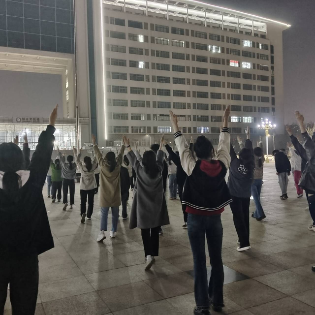 大学广播体操比赛作为一项经典传统的赛事,不仅是一次团结向上、健康活力的展示,也是一次促进我校群众性体育运动的总动员,更是一场全校同学同场竞技、增进友谊的盛会。在队员招募过程中,学生们踊跃参与,积极报名,表现出极强的集体荣誉感与参与感。活动准备阶段,为了更好地对参赛队员进行培训,外国语学院文体活动部全体成员于一周前开始练习广播体操。训练期间,学生们充分重视比赛,精心准备,在现场上全身心的投入体操训练,举手投足间呈现出广播体操的力与美,每一式动作都规范整齐、刚劲有力,展现出外国语学院学子朝气蓬勃、团结向上、积极进取的精神风貌。同时,在严格的要求下,队员们互相鼓励,每个人都怀有同样的信念:手再伸直一点,背再挺直一点,动作再整齐一点,每天再进步一点。他们坚信通过日复一日的训练,在四月的比赛中一定能取得理想的成绩。