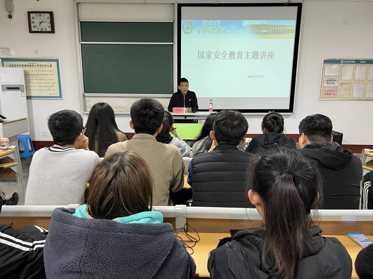 4月3日,学院开展国家安全教育主题讲座,新一期入党积极分子参加。讲座紧贴大学生实际,内容丰富,专业性强,增强了同学们的安全意识。辅导员任庆超从重视国防安全、了解国防安全法律法规、保守国家机密、加强网络安全意识和树立正确世界观、人生观、价值观五个方面做出严谨细致、深入浅出的讲解,向同学们讲解国家安全的概念和重要性,结合多年来的工作经验和事实案例深入分析,与同学们积极进行互动交流,分享讨论个人感悟,同学们受益匪浅,互相分享自己的收获。