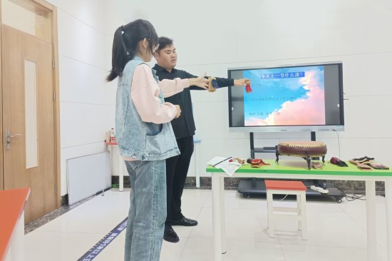 上午9时,“曲艺小课堂”在青少年综合服务中心三楼活动室准时开课。聊城市东昌府区曲艺家协会副主席郭子玉老师受邀为大家讲解。郭老师首先向同学们介绍了曲艺的基础理论知识,并与同学们开展密切互动,鼓励在场同学积极尝试朗读绕口令,锻炼口语表达。接着,郭老师又向同学们介绍了曲艺相关的乐器,如快板、牛胯骨、鸳鸯板、大鼓等,并向同学们一一展示。郭老师生动的唱腔、惟妙惟肖的表演深深地吸引了同学们的目光,精彩之处,掌声不断。
