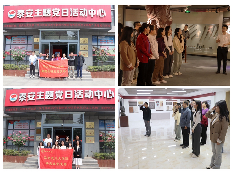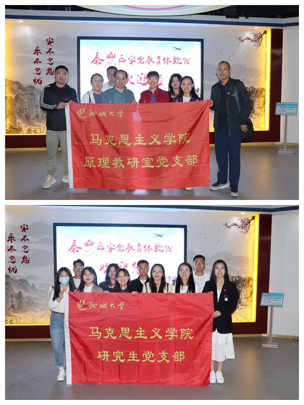 5月11日,马克思主义学院原理教研室党支部、研究生党支部赴山东泰安市泰山区安全教育体验馆、泰安主题党日活动中心、泰安市九女峰乡村振兴示范片区开展主题党日活动。