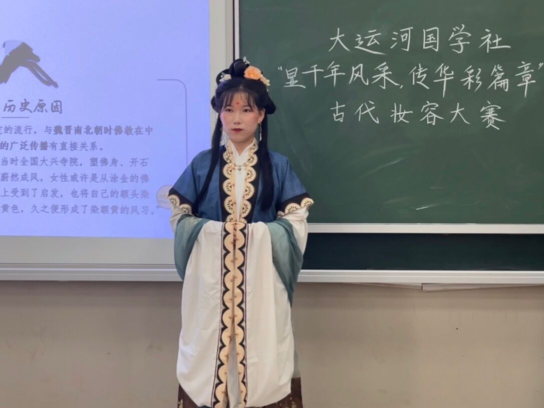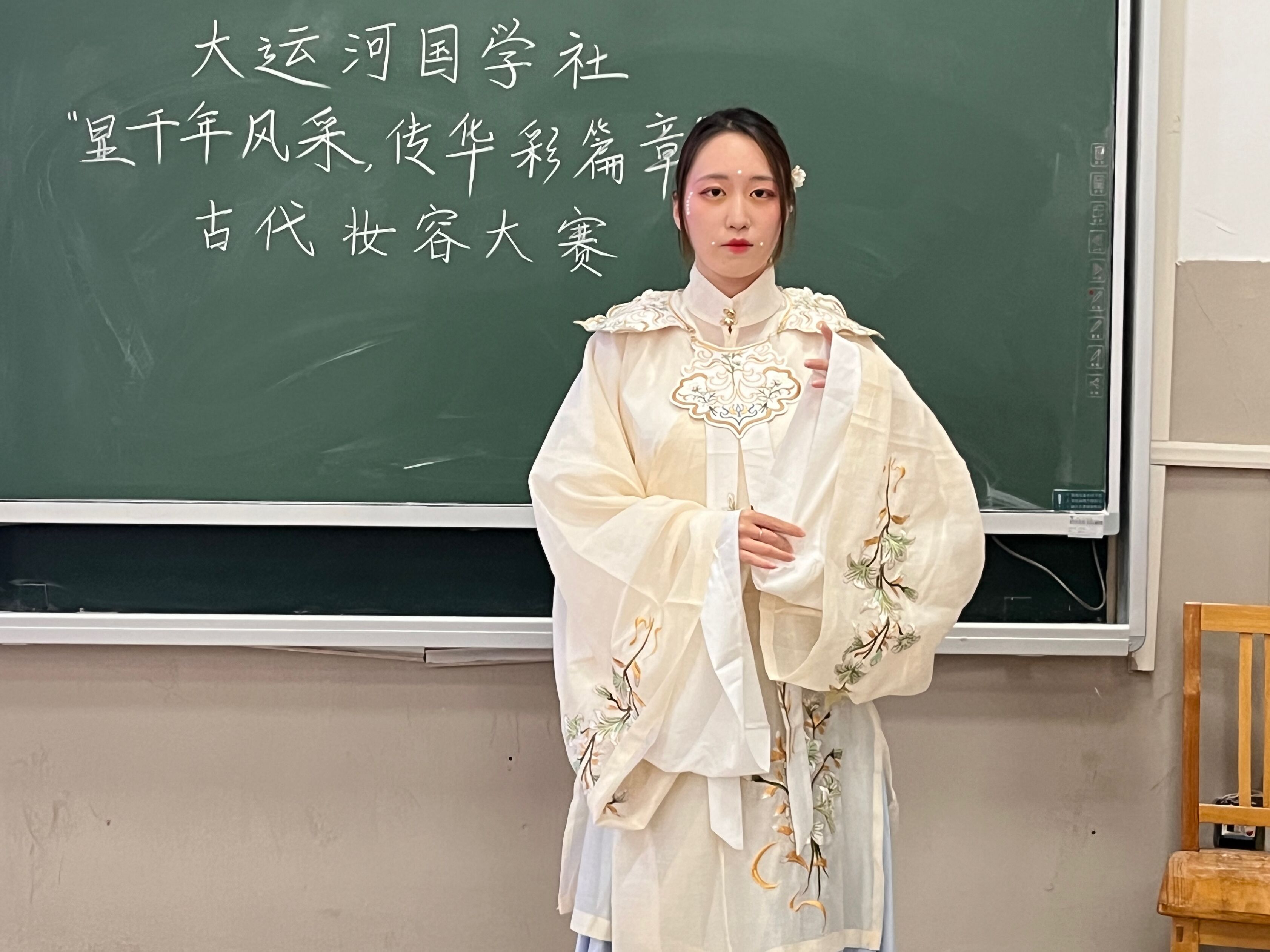 5月21日,聊城大学大运河国学社举办“显千年风采,传华彩篇章”古风妆容大赛。吸引了一百余名文学院学子踊跃参加。