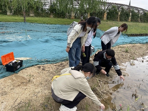 在九州洼月季公园,同学们采取水样,并使用相关实验仪器测量其pH、Do、Eh等相关理化性质。通过这些科学的指标,同学们了解了九州洼月季公园的水体质量,熟练掌握了实验仪器的使用方法,巩固了相关专业知识。