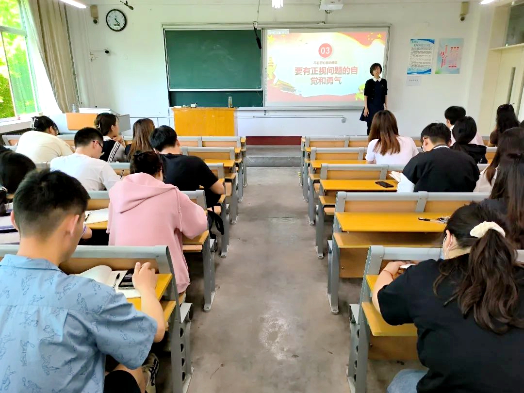 冀芦沙从集中学习的目的和意义、培养强烈的自我革命精神、培养正视问题的思想和勇气、加强党的集中统一领导四个方面展开讲解。冀院长通过对药学院发展历程的解读,分析出正是因为药学院三代老师在困难条件下的坚守才有了学院的今天,这正印证了“中国特色社会主义进入新时代,我们比历史上任何一个时期都更接近更有信心和能力实现中华民族伟大复兴”。她强调,广大党员干部应该积极发挥先锋模范带头作用,在与药学院学生的共同生活、共同学习中,通过一言一行、一举一动在药学院学生心中树立良好的形象,提升药学院学生的“幸福感、获得感、安全感”。课堂结束后,学生党员结合自己的成长经历,互相交流认识与感悟。他们纷纷表示要在今后日常学习生活中以高标准严格要求自己,充分发挥党员的模范作用,以自身行动影响和带动身边同学。