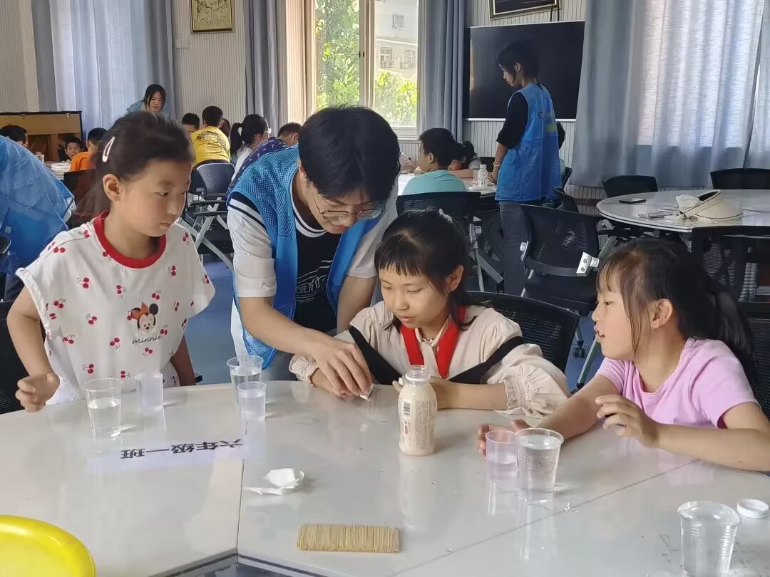 本次科技微课堂走进三年级一班和三年级二班,共有75名小朋友听课。授课过程中,志愿者们结合生活中的物理现象,向小朋友们讲解有关水的张力的知识,并通过简单有趣的实验,为小朋友们呈现了一幕又一幕的“神奇现象”,引起了小朋友们的浓厚兴趣。面对志愿者们提出的问题,他们积极思考,踊跃回答。实验环节,在志愿者们的耐心指导下小朋友们完成了四个有关水的张力的小实验,让小朋友们对水的张力有了更加深入的了解,现场气氛十分活跃。