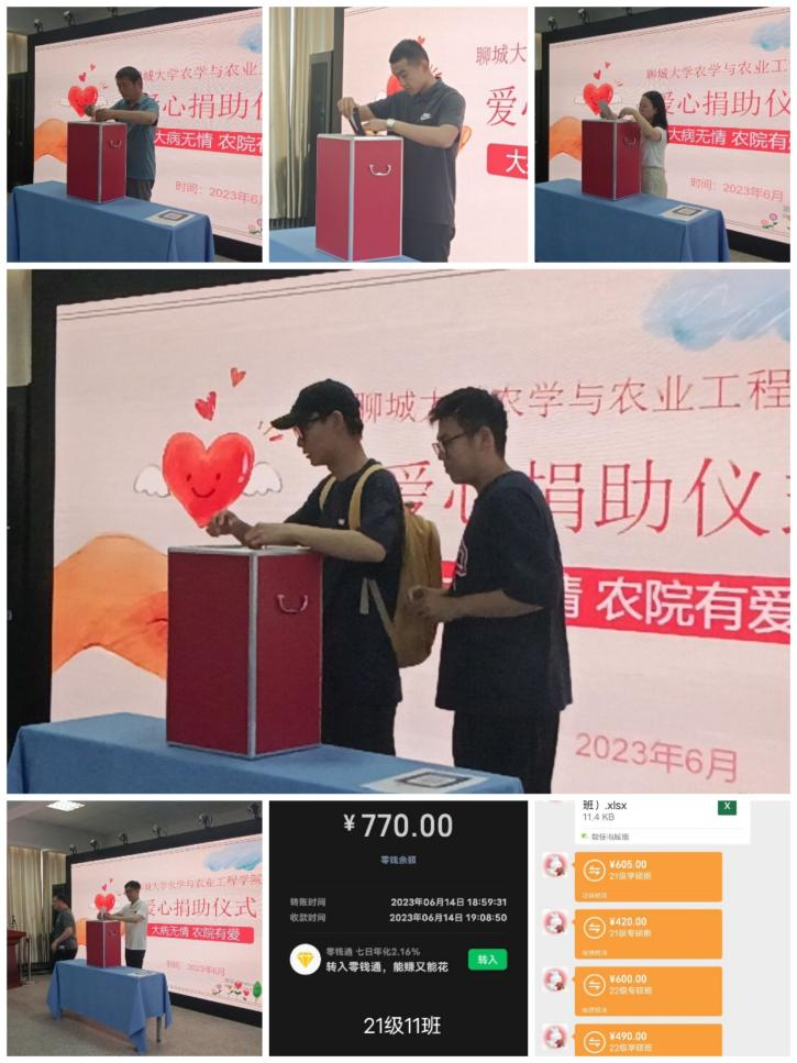 6月15日,聊城大学农学与农业工程学院组织捐款活动,为患病学生马同学爱心募捐,用真情传递温暖,以爱心点燃希望。