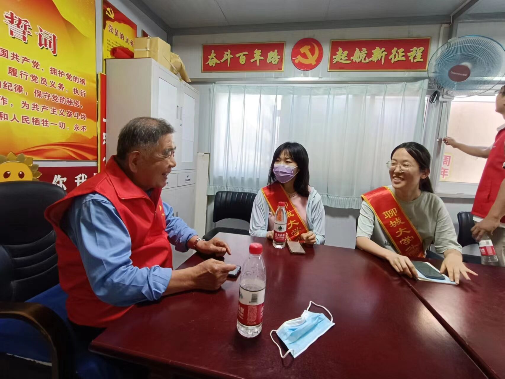 为促进当代大学生学习并感受志愿服务的热情与魅力,加深宣讲团成员对井冈山精神的理解,7月12日,外国语学院“曙光公益 红色宣讲”社会实践服务队于山东省聊城市东昌府区聚源社区红旗驿站举办“拜访革命先辈 追寻红色足迹”社会实践活动,拜访了一位老战士兼老党员——梁大爷,聆听他的参军经历和人生经验,感悟他的红色岁月。