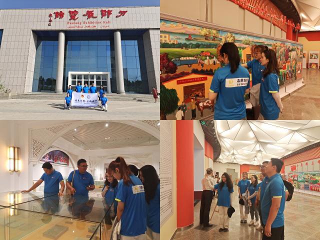 为领略新疆地区历史,共同传承红色文化,服务队走进新疆维吾尔自治区博物馆,逐一参观“瀚海珍衣——新疆古代服饰精品展”“共有的家园——铸牢中华民族共同体意识”“永远跟党走——庆祝中国共产党成立100周年新疆革命文物展”等主题陈列展,在“伏羲女娲图”“五星出东方利中国锦”等文物中感受西域历史风貌,挖掘多民族团结进步、和谐发展的精神文化基因,在革命文物、历史文献的解读中回顾中国共产党百年光辉历程,理解中国共产党百年奋斗的历史意义与深刻内涵,促进红色文化与思政教育相融合。