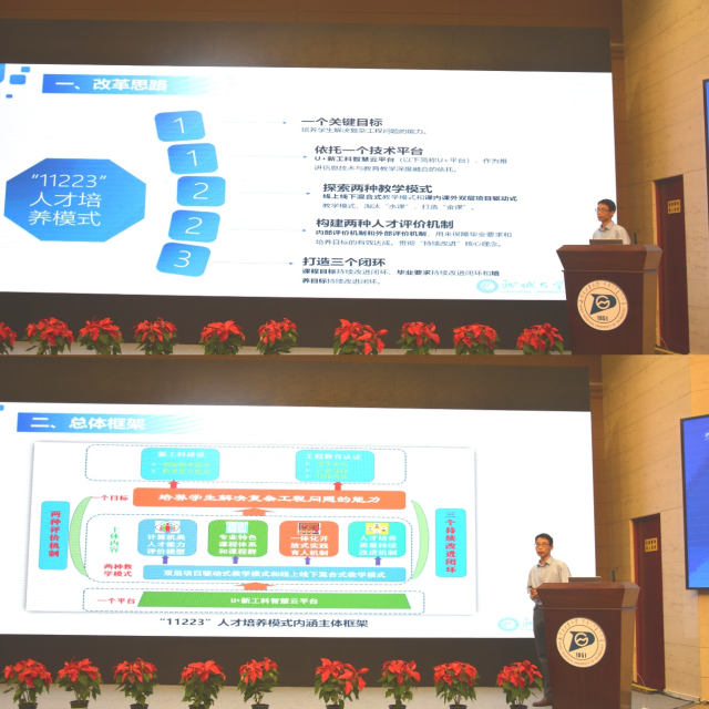 李成友以聊城大学计算机类专业为例分享了新工科建设背景下“11223”人才培养模式的改革经验以及阶段性成果。“11223”人才培养模式,即一个关键目标、依托一个技术平台、探索两种教学模式、构建两种人才评价机制、打造三个持续改进闭环。李成友将该人才培养模式创新实践的思路做了精彩独到的分享,并结合学院取得的阶段性改革成果进行了深入阐释。
