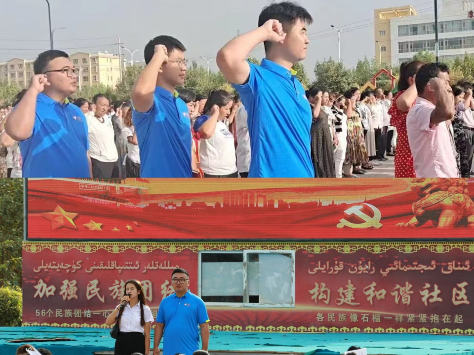 7月31日早上,为深入开展爱国主义教育、增强基层组织凝聚力,“情系西部,法伴喀什”服务队前往新疆麦盖提县新时代社区,开展“以团结铸剑,为法治生花”活动。活动在庄严的升旗仪式中展开,团队成员庄严肃穆,通过高唱国歌、行注目礼的方式,表达对祖国的深深热爱和崇高敬意。随后服务队成员做国旗下演讲,向社区居民介绍服务队的基本情况以及此次服务活动的主要内容,表示接下来将在社区开展相应的普法宣传活动,以生动科学的方式,开展青少年法制宣传教育,让法治意识在每一位青少年心中生根发芽,得到了社区居民的普遍欢迎与期待。