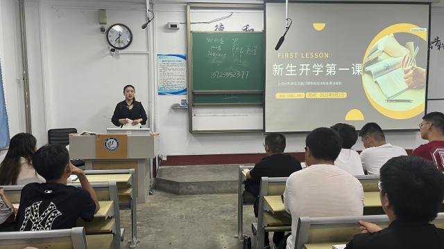 开学第一课内容涵盖认识大学、新生过渡、习惯养成、反诈防贷职业规划及军训注意事项等板块。班会上,班主任对新同学的到来表示了热烈欢迎,并且进行了自我介绍,向同学们介绍了高中与大学的区别,期望同学们能够尽快适应,完成角色转变,正确树立自己的人生目标,合理规划自己的大学生活。各班班助结合自身经验向新生们就专业课学习方法进行分享,从大学生活等各个方面详细地解答了同学们的困惑,鼓励同学们以崭新的面貌、良好的状态、乐观的心态迎接大学生活,帮助新生树立规则意识、安全意识、与自我保护意识。最后,由各班班主任带领学生认真阅读学生手册,并带领大家宣誓、在学生手册的承诺书上签字。