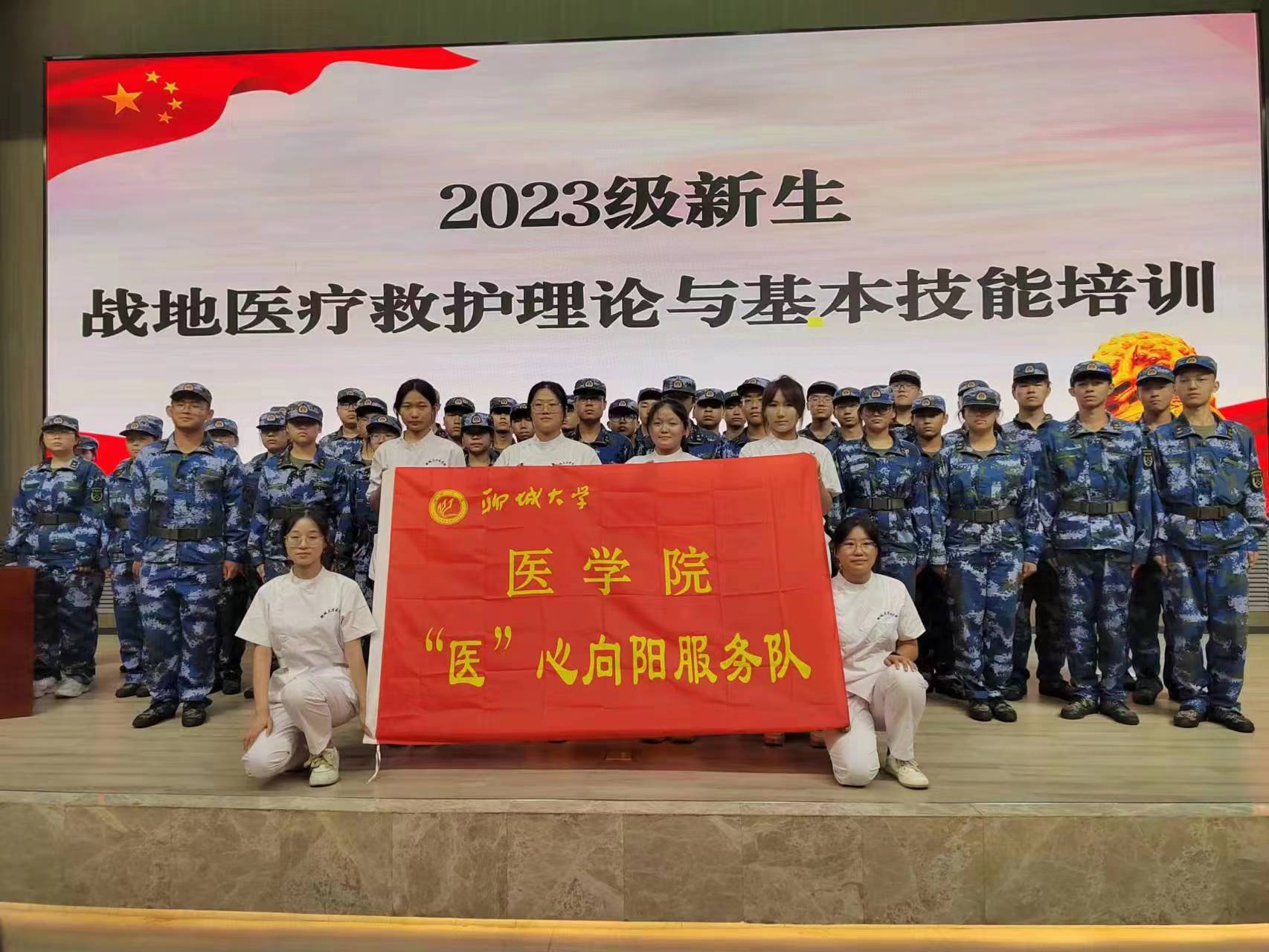 9月7日下午,医学院“医”心向阳青年志愿服务队联合校医院于实训楼报告厅开展2023级学生战地医疗救护理论与基本技能培训公开课。