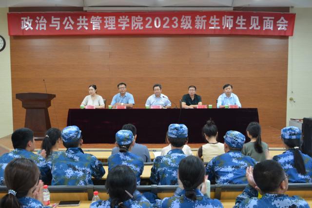 9月14日,政治与公共管理学院举办2023级新生师生见面会。政治与公共管理学院党委书记李士峰,院长于学强,党委副书记乔华军,副院长孟伟、副院长刘晋、团委书记于进,学院各专业系主任、辅导员以及2023届学生会主要学生干部代表、2023级全体新生参加见面会。