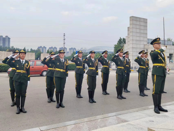 上午7时,国旗护卫队迈着铿锵有力的步伐,迎着朝阳,昂首挺胸,将五星红旗护送至升旗台。“升国旗,奏唱国歌!”随着激昂的《义勇军进行曲》响起,鲜艳的五星红旗冉冉升起。全体人员肃立,行注目礼,在庄严肃穆的气氛中回忆历史,缅怀先烈。