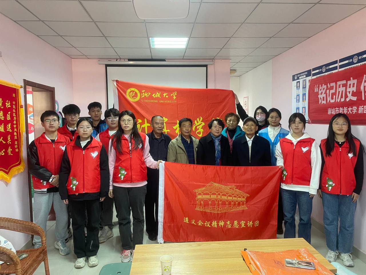 11月13日,计算机学院2021级10班“巡回之旅”志愿宣讲团在聊城市中巨社区开展遵义会议精神志愿宣讲活动,带领社区居民深入了解遵义会议的历史背景和重要意义。