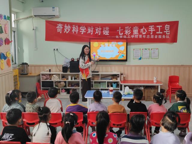 12月7日,化学化工学院青年志愿者服务队举办“奇妙科学对对碰,七彩童心手工皂”活动。