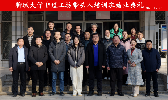 12月23日,聊城大学非遗工坊培训班结业典礼在美术与设计学院举行,美术与设计学院党委副书记、院长张兆林副教授、副院长史秀娜副教授、副院长王青嵩副教授,培训班的全部学员参加,典礼由培训班班主任刘昆副教授主持。