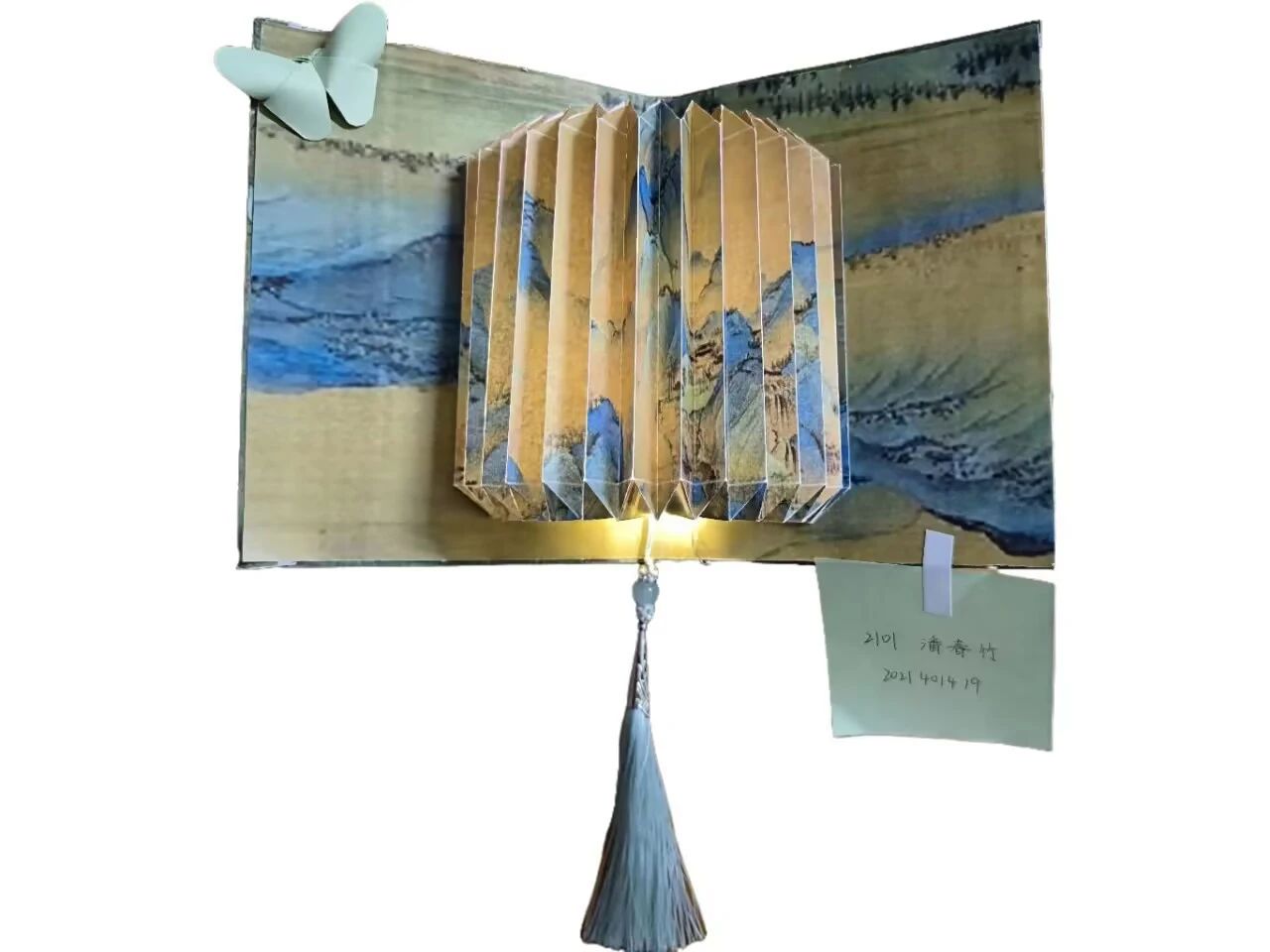 牛皮纸下灯亮起,手作体验暖意生。活动伊始,主持人播放视频介绍纸书灯的历史与制作方法,并为同学们发放材料。同学们亲自动手,选取材料,交流想法,发挥创意,制作出一盏盏富有独特魅力和文化内涵的纸书灯。2021级1班潘春竹将传统中国元素与山水国画元素结合,又以精致的流苏和翩翩起舞的蝴蝶作为点缀,展现出国风版纸书灯的如诗如画。2022级2班刘奕彤将传统中国扇子元素与中国诗词结合,又以大雁贴纸作为点缀,展现出国风扇形书灯的美轮美奂。2022级3班王慧琳将王羲之的《兰亭集序》写入书灯,一笔一画,挥毫泼墨,将蝴蝶、古风贴纸作为装饰,通过对折、剪裁、粘贴等步骤,让蝴蝶与光影跳动于书灯之上。2022级6班高晓雪将中国汉字与灵动的蝴蝶相对应,让汉字与蝴蝶跳跃于纸张之上。点亮书灯,带来的不仅是明亮与温暖,更是中华优秀传统文化的传承与延续。