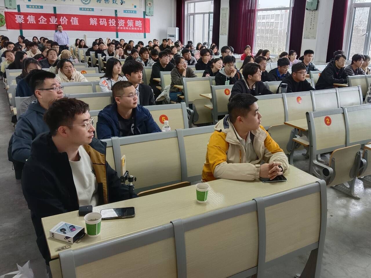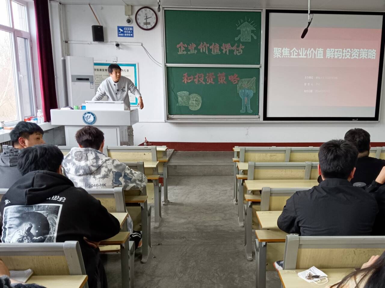 本次活动以“聚焦企业价值,解码投资策略”为侧重点,强调大学生须知创业潜规则,使大学生掌握企业投资策略,从而为发展自身事业提供经济基础。“为什么大学生毕业以后整体就业比较困难?”芦岩抛出问题,让同学们思考。芦岩提出,“大多数大学生很少有意识地积累、掌握经济知识,较难解决现实生活中的经济问题,”强调了掌握经济运转常识类课程的重要性,激发同学们的学习兴趣。随后,芦岩从企业价值和股票评估,以及投资策略两方面展开讲述,通过讲述17世纪初荷兰销售香料的途径、英国靠股份公司为工业革命提供资金支持等例子,使同学们更清晰地了解到股票的来源、内涵、价值性、波动性以及风险性,有血有肉,通俗易懂。