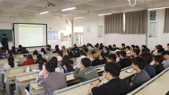 张振宇从同学们最关心的问题“要不要学数学”出发,系统地为同学们分析了考研局势,详细讲解了选择报考院校与专业的方法,为同学们提供了相应的报考方向和考研指导。阚常杰向同学们分享了关于数学、政治、物理化学在考研时期的复习方法,并重点强调考研复试中需要具备较强的专业素养,他提醒同学们在备考过程中注重全面复习与重点突出相结合,既要掌握基础知识又要针对自己的薄弱环节进行有针对性的强化训练。刘心茹结合自己考研上岸的经历,为同学们分享备考的切身感受,并建议同学们合理分配复习时间,始终保持积极的心态和自信心,专注、坚定地投入备考中。活动最后,同学们积极进行互动交流,张振宇对同学们在考研方面的问题进行一一解答,现场氛围热烈,同学们纷纷表示受益颇多,今后会努力找到自己的备考方向,向优秀学子看齐,争取考入理想院校。