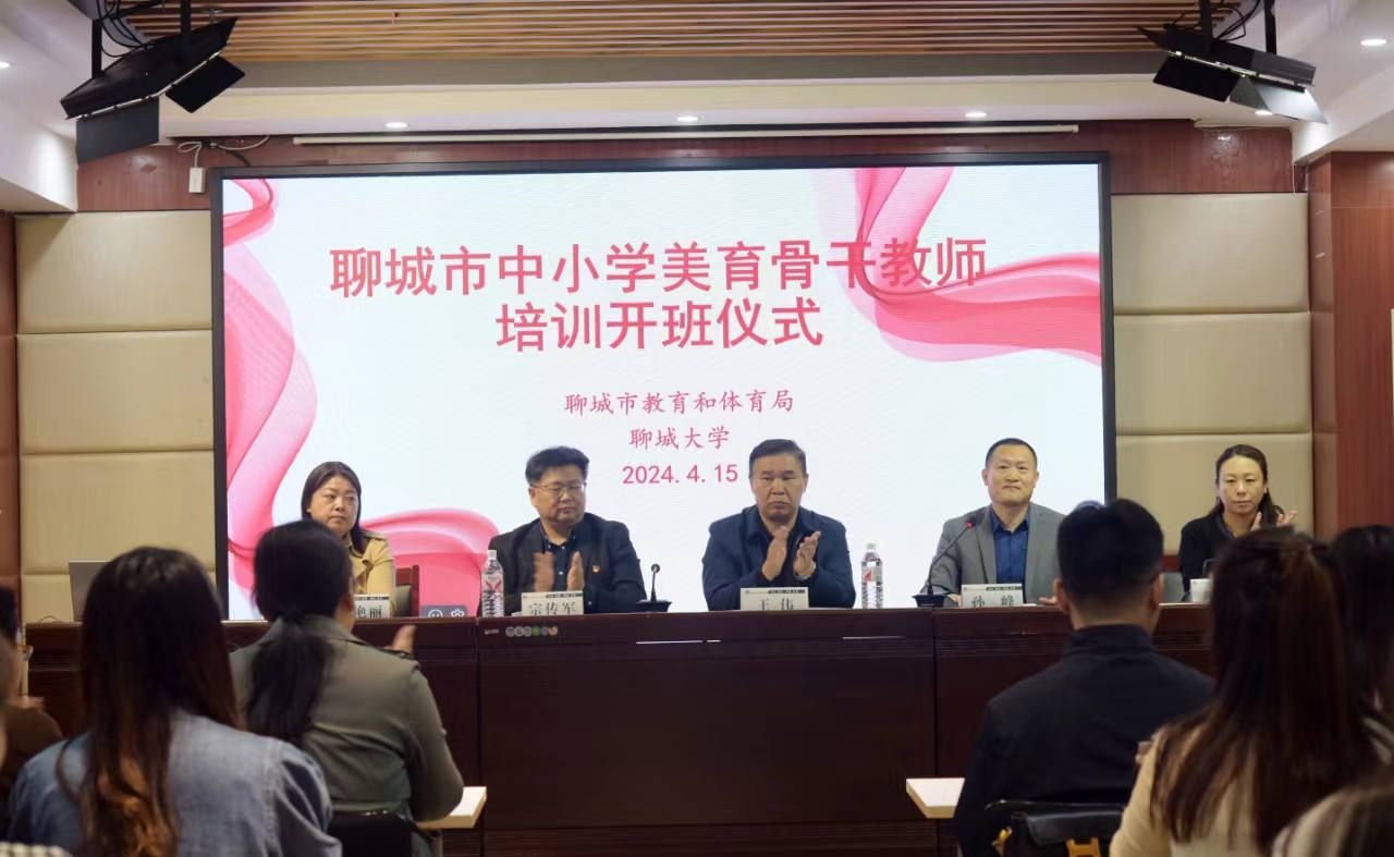 “向美而行,美美与共”,4月15日,由聊城市教育和体育局主办,聊城大学承办、音乐与舞蹈学院具体组织实施的为期五天的聊城市中小学美育骨干教师培训班在润荷苑会议室举行。聊城市教体局四级调研员孙峰,我校继续教育学院院长王伟,音乐与舞蹈学院党委书记宗传军、院长尹蕾,副院长牟艳丽出席开班仪式,来自聊城市各县区的90位中小学美育骨干教师参加。