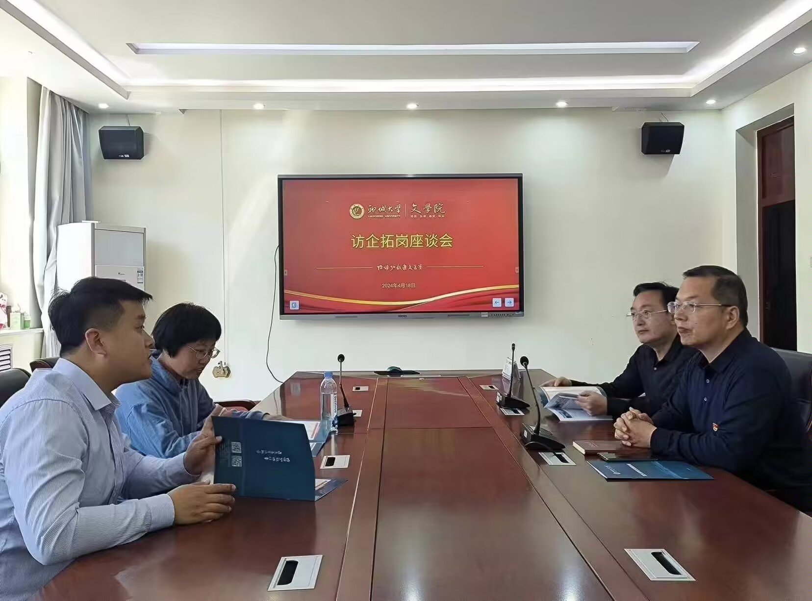 为积极拓展校企合作渠道,探讨教育教学改革,加快推进毕业生就业指导工作,4月18日,文学院举办访企拓岗座谈会。聊城东方高级中学进行聊城东方高级中学校长高秋姗、人力资源部主任于海洋来校座谈。文学院党委书记李承虎,党委副书记、副院长于东恩,辅导员胡明洋参加座谈。